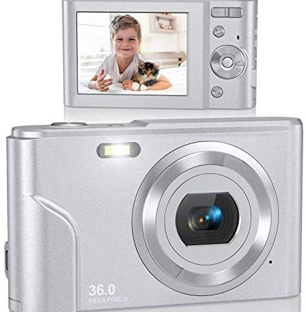 Digital Camera, Lecran FHD 1080P 36.0 Mega Pixels Vlogging Camera with 16X Digital Zoom, LCD Screen, Compact Portable Mini Cameras for Students, Teens, Kids (Silver)